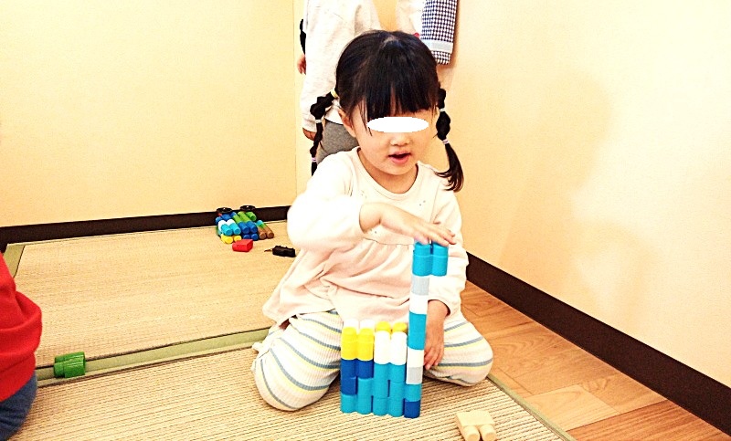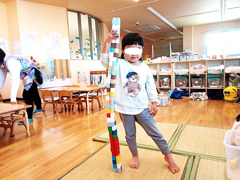 子どもたちは同じブロックを使っていても、日々成長していることで、見方も遊び方も発展しているのだと考えます。乳幼児が絵本や遊びの中で「もういっぺん!」を繰り返すのは、繰り返しの中に潜む楽しさのクライマックスを待ちわびる「うれしさ」と、いつも新しい何かを発見できる喜びがあることを分かっているからに違いないと思います。