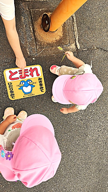 月齢が低い子どもたちは、お散歩コースの一部を歩き、ベビーカーにも乗り体力を温存しながら満足できるように調整します。園庭の様に柔らかな地面を歩くのと異なり、ひっかかりは良いアスファルトですが、その分足への負担は大きいはずです。